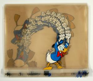 [Donald Duck swings from a rope]