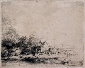 Landscape with a cow drinking