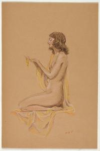 [Study, kneeling nude with drape]