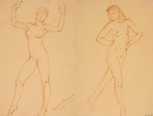 [Study, standing nude with arms raised]
