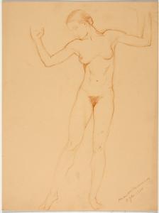 [Study, standing nude with arms raised (similar pose to one of the figures in “Morning, Noon, and Night”)]
