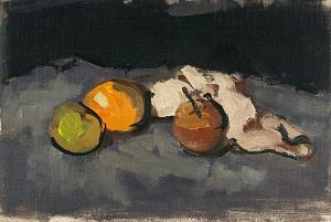 [Still life with apples on gray background]