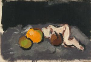 [Still life with apples on gray background]
