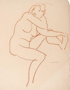 [Nude woman holding foot]