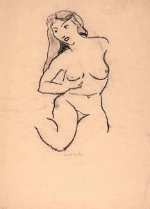 [Kneeling nude woman holding breast]