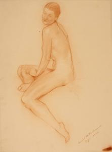 [Study, seated nude, side view]