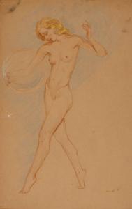 [Study, standing nude holding ball]