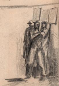 untitled, three standing figures carrying handheld placards. [Ellis 55(3)]