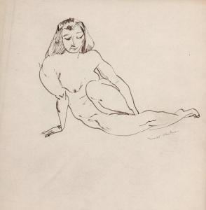 [Seated nude woman leaning on right arm]