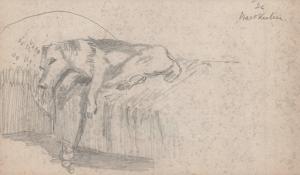 [Study of dog laying on bed]