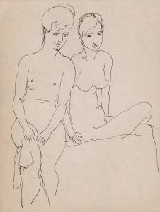 [Two seated nude women]