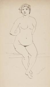 [Nude woman with arms behind back]