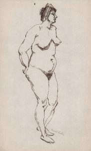 [Standing nude woman with hands behind back]