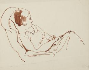 [Woman in profile seated in chair]