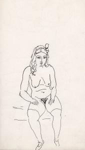 [Seated female nude with hands on thighs]