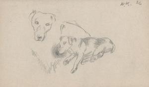 [Study of a dog's head and a dog laying down]