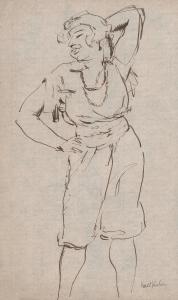 [Standing woman, right hand on hip and left hand behind head]