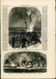 The Siege of Charleston - Soldiers exploding torpedoes by throwing pieces of shell on them from the Saps, and The Siege of Charleston - Explosion of the magazine at Fort Moutrie