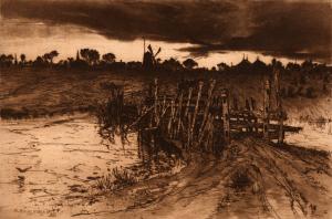 MediumEtching, drypoint, roulette, scotch stone with sand paper, and hand wiping in brown ink