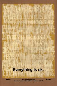 Skip to main content Collections MenuExpandMy CollectionDownload 300 x 300 (Download)View PDFEverything is ok.PreviousNext 300 x 300 (Download)Everything is ok.Artist Amos Paul Kennedy Jr. (American, born 1950)Dateno dateClassificationsPrintMediumLetterpress reliefDimensions17 x 11 1/2 in.Credit LineGift of the artistKeyword/SubjectAfricanAmericanposterartistpoliticaltextsloganObject number2011.0246 Discover More CHILDREN Tired of being Harrassed By Your Stupid PARENTS? ACT NOW! Move Out, Get a JOB, Pay Your Own Bills While You Still Know EVERYTHING!Amos Paul Kennedy Jr.no dateTee’s Lounge/ Ladies NO! Fighting in the BathroomAmos Paul Kennedy Jr.no dateCoffee should be Black as Hell, Strong as Death and Sweet as LoveAmos Paul Kennedy Jr.no datePlease Stay Off All Buses Monday - Jo Ann Robinson from her announcement of the bus boycottAmos Paul Kennedy Jr.no dateTee’s Lounge/ Be Grown OR Be GoneAmos Paul Kennedy Jr.no dateFISHING Give a man a fish and he’ll eat for a day. Teach a man to fish and he’ll sit in a boat and drink beer ALL DAYAmos Paul Kennedy Jr.no dateCatching Fish is Not the Whole of FishingAmos Paul Kennedy Jr.no dateRosa Louise Parks 1913-2005Amos Paul Kennedy Jr.no dateThere’s NO Retirement for an ARTIST It’s Your Way of Living so There’s No End to It - Henry MooreAmos Paul Kennedy Jr.no dateYou Can’t Do RIGHT WRONG and You Can’t Do WRONG RIGHT - Mr. Robert WilsonAmos Paul Kennedy Jr.no dateMan Builds No Structure That Outlives a Book - Carl ElliottAmos Paul Kennedy Jr.no dateChildren of the same Mother do not always agree - NigeriaAmos Paul Kennedy Jr.circa 2010 Powered by eMuseum