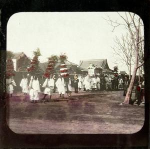 Skip to main content Collections MenuExpandMy CollectionView PDFShinto FuneralPreviousNext 300 x 300 (Download)Shinto FuneralDatec 1880ClassificationsPhotographMediumhand colored glass slideDimensions3 1/4 x 3 1/4 in.Credit LineGift of Dr. Henry ’51 and Mrs. Nancy Peikin RosinKeyword/SubjectSubjectCeremonyShintofuneralObject number2001.0169 Discover More A Funeral by Shinto PriestsNakajima Matsuchic 1870A Shinto Priestc 1880No. 72. 1195 Anomiya Temple Sado ShintoNakajima Matsuchic 1870No. 81 Sailing ships on the River Tonec 1880No. 86 Yokohama Portc 1880No. 92 Two Buddhist Priestsc 1880No. 93 Tinkersc 1880No. 116 Carpenter at his worksc 1880No. 117 Fuji from the Lake Hakonec 1880Two Buddhist Priestsc 1880A weaving womancirca 1880No. 68 Two Carpentersc 1880 Powered by eMuseum