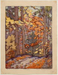 Skip to main content Collections MenuExpandMy CollectionView PDFAn Autumn RoadPreviousNext 300 x 300 (Download)An Autumn RoadArtist Jane Berry Judson (American, 1868 - 1935)Date1945ClassificationsPrintMediumColor woodcutDimensions7 3/4 × 5 7/8 in.Credit LineMuseum purchaseKeyword/SubjectoutsideLandscapetreeswoodsautumnObject number2002.0027 Discover More Autumn Fantasy IILetterio Calapai1987UntitledAlessandra Sanguinetti2003The QueenRichard Cooper II1804The Dragon ArumWilliam Ward1801 Image Not Available for Autumn DayAutumn DayGeorge Vander Sluis1956The Nodding RenealmiaJames Caldwall1801 Image Not Available for Mined Out Area/Storage PileMined Out Area/Storage PileCarroll Thayer Berry1945Black DominantJeannette Judson1966Yellow Bird on Red FlowersImao Keinenno dateAutumn FieldWilliam H. Hays2017 Image Not Available for [Covered dish][Covered dish]19th centuryNepenthe Working Proof 2Helen Frankenthaler1973 Powered by eMuseum