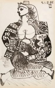 Skip to main content Collections MenuExpandMy CollectionDownload 300 x 300 (Download)View PDF[woman]PreviousNext 300 x 300 (Download)[woman]Artist Pablo Picasso (Spanish, 1881 - 1973)Dateno dateClassificationsPrintMediumLithographDimensionsObject: 16 9/16 × 10 5/8 in. (42 × 27 cm)Credit LineGift of Dr. Alfred T. ColletteKeyword/SubjectwomanseatedObject number2003.0140 Discover More untitled, seated woman wearing oriental jacket (a)Pablo Picasso20th c Image Not Available for Peintre et son ModelePeintre et son ModelePablo Picasso1964Cote d’Azur posterPablo Picassono dateSecond Vallauris PosterPablo Picasso1948 Image Not Available for Poteries De Picasso a la Maison de la Pensee FrancaisePoteries De Picasso a la Maison de la Pensee FrancaisePablo Picasso1948Le Joueur de Flûte [The Flute Player]Pablo Picasso1959La Danse Des FaunesPablo Picasso1957La Columbe De L’AvenirPablo Picasso1962untitled, nude in studioPablo Picasso20th cBacchanalePablo Picasso1959 Image Not Available for L'Age de SoleilL'Age de SoleilPablo Picasso1950L'Abreuvoir (Chevaux au bain) Pablo Picasso1906, published 1913 Powered by eMuseum