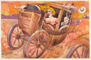 [Stagecoach with screaming woman]