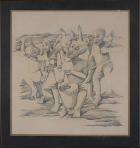 Skip to main content Collections MenuExpandMy CollectionView PDFDancersPreviousNext 300 x 300 (Download)DancersArtist Robino Ntila (Tanzanian, 1953 - 2020)Date1977ClassificationsDrawingMediumgraphiteDimensions19 3/8 × 18 3/16 in.Credit LineGift of the Maryknoll SistersKeyword/SubjectfigurativeAfricanArtfolkObject number2012.0068 Discover More Playing MusicRobino Ntila1977HuntersRobino Ntila1977Mti wa MatambikoRobino Ntila1975NgomaRobino Ntila1980Nani mwiziRobino Ntila1978MikumiRobino Ntila1977FamiliaRobino Ntila1977Chakula Bora [Healthy Food]Robino Ntila1977MahindiRobino Ntila1976WavuviRobino Ntila1977SokoniRobino Ntila1976Mama na MtotoRobino Ntila1977 Powered by eMuseum