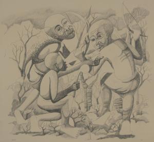 Skip to main content Collections MenuExpandMy CollectionView PDFHuntersPreviousNext 300 x 300 (Download)HuntersArtist Robino Ntila (Tanzanian, 1953 - 2020)Date1977ClassificationsDrawingMediumgraphite pencilDimensions18 × 18 in. Credit LineGift of the Maryknoll SistersKeyword/SubjectfigurativeAfricanArtfolkObject number2012.0111 Discover More DancersRobino Ntila1977Playing MusicRobino Ntila1977Mti wa MatambikoRobino Ntila1975NgomaRobino Ntila1980Nani mwiziRobino Ntila1978MikumiRobino Ntila1977FamiliaRobino Ntila1977Chakula Bora [Healthy Food]Robino Ntila1977MahindiRobino Ntila1976WavuviRobino Ntila1977SokoniRobino Ntila1976Mama na MtotoRobino Ntila1977 Powered by eMuseum