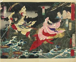 Skip to main content Collections MenuExpandMy CollectionDownload 300 x 300 (Download)View PDFEight Headed Dragon - Yamata no OrochiPreviousNext 300 x 300 (Download)Eight Headed Dragon - Yamata no OrochiArtist Toyohara Chikanobu (Japanese, 1838 - 1912)Datecirca 1887ClassificationsPrintMediumColor woodcutDimensions13 5/8 x 9 1/8 in. Credit LineGift of Colonel John R. FoxKeyword/SubjectwateroceanswordstormwavesSamuraiObject number1967.1543B Discover More Eight Headed Dragon - Yamata no OrochiToyohara Chikanobucirca 1887Eight Headed Dragon - Yamata no OrochiToyohara Chikanobucirca 1870sEight Headed Dragon - Yamata no OrochiToyohara Chikanobudesigned circa 1887Noh PlayToyohara Chikanobuc 1893Noh PlayToyohara Chikanobuc 1893 Image Not Available for WomenWomenToyohara Chikanobuc 1897Sea Warriors ClashingToyohara Chikanobuc 1890Noh PlayToyohara Chikanobuc 1893Actors of the Sawamura and Ichikawa SchoolsToyohara Kunichika1868Sea Warriors ClashingToyohara Chikanobuc 1890Sea Warriors ClashingToyohara Chikanobucirca 1890 Image Not Available for WomenWomenToyohara Chikanobuc 1897 Powered by eMuseum