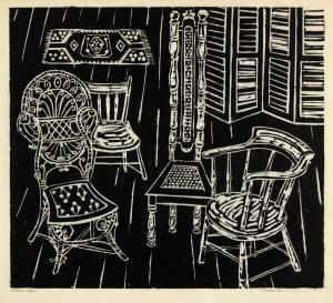Skip to main content Collections MenuExpandMy CollectionView PDFAddie’s ChairsPreviousNext 300 x 300 (Download)Addie’s ChairsArtist Cecile Gray Bazelon (American, 1927 - 2023)Date1957ClassificationsPrintMediumWoodcutDimensions16 1/16 × 16 15/16 in. Credit LineGift of the artist Keyword/Subjectstill-lifelifefurniturechairsObject number2014.0055 Discover More Eileen RestingCecile Gray Bazelon1962NaomiCecile Gray Bazelon1959Jerry’s ParrotCecile Gray Bazelon1961Saturday’s FlowersCecile Gray Bazelon1957Girl in BathCecile Gray Bazelon1957New York SummerCecile Gray Bazelon1962Parrot and PalmCecile Gray Bazelon1959Kaylie JonesCecile Gray Bazelon1962Kaylie Ann JonesCecile Gray Bazelon1962Eileen RecliningCecile Gray Bazelon1962Woman in BathCecile Gray Bazelon1957Fonteyra’s Burmese CatCecile Gray Bazelon1962 Powered by eMuseum