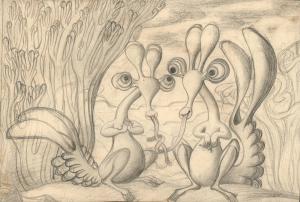 (2) untitled [sketch, two anteater-like creatures holding tongues]