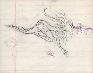 (3) untitled [sketch, flying nude woman, blowing flowers out of her mouth]