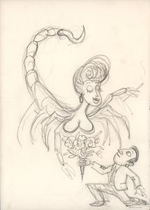 (4) untitled [sketch, man offering flowers to a woman/scorpion]
