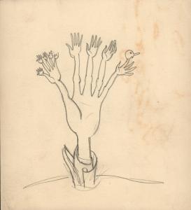(7) untitled [sketch, hand sprouting hands from fingers]