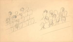(18) untitled [sketches of heads and hairdos in pews]