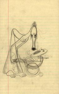 (37) untitled [sketch, female creature with crying baby in carriage]