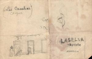 (50) untitled [sketch, figure and doorways “Las Camelias and Laelva Abarrotoe]