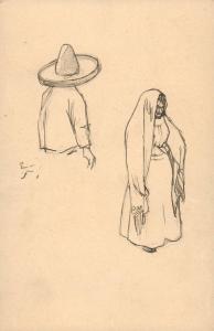 (51) untitled [two sketches, Mexican theme, sombreros and woman wearing shawl over her head]