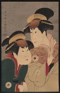 Actors Segawa Tomisaburo II as Yadorigi, Wife of Ogishi Kurando and Nakamura Manyo as the Maid Wakakusa