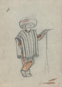(94) untitled [sketch, Mexican man in costume, sombrero and poncho]