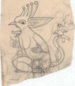 (140) untitled [sketch, two bird characters, fanny of bird has a scary face on it]