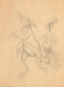 (142) untitled [sketch, bird people dressed for a party]