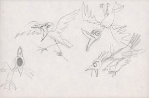(160/8) “Strictly for the Birds”, untitled [sketch, four squawking birds]