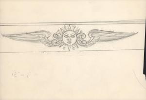 (164) untitled [sketch, sun/face with wings (angel) design for border detail]