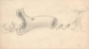 (171) untitled [sketch, devouring worm-like creature, Today is Tomorrow. Song without words.; verso, sketch landscape]