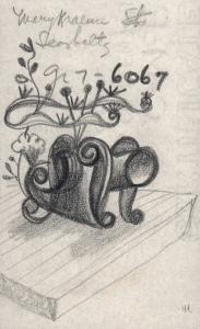(219) untitled [sketch, cannon-lime object with plants growing from it]