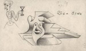 (227) untitled [sketch, stylized study of woman with glass, geometric face]