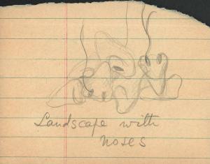 (179) untitled [sketch, two head studies, one with arm for nose; verso sketch of a hand with a face]